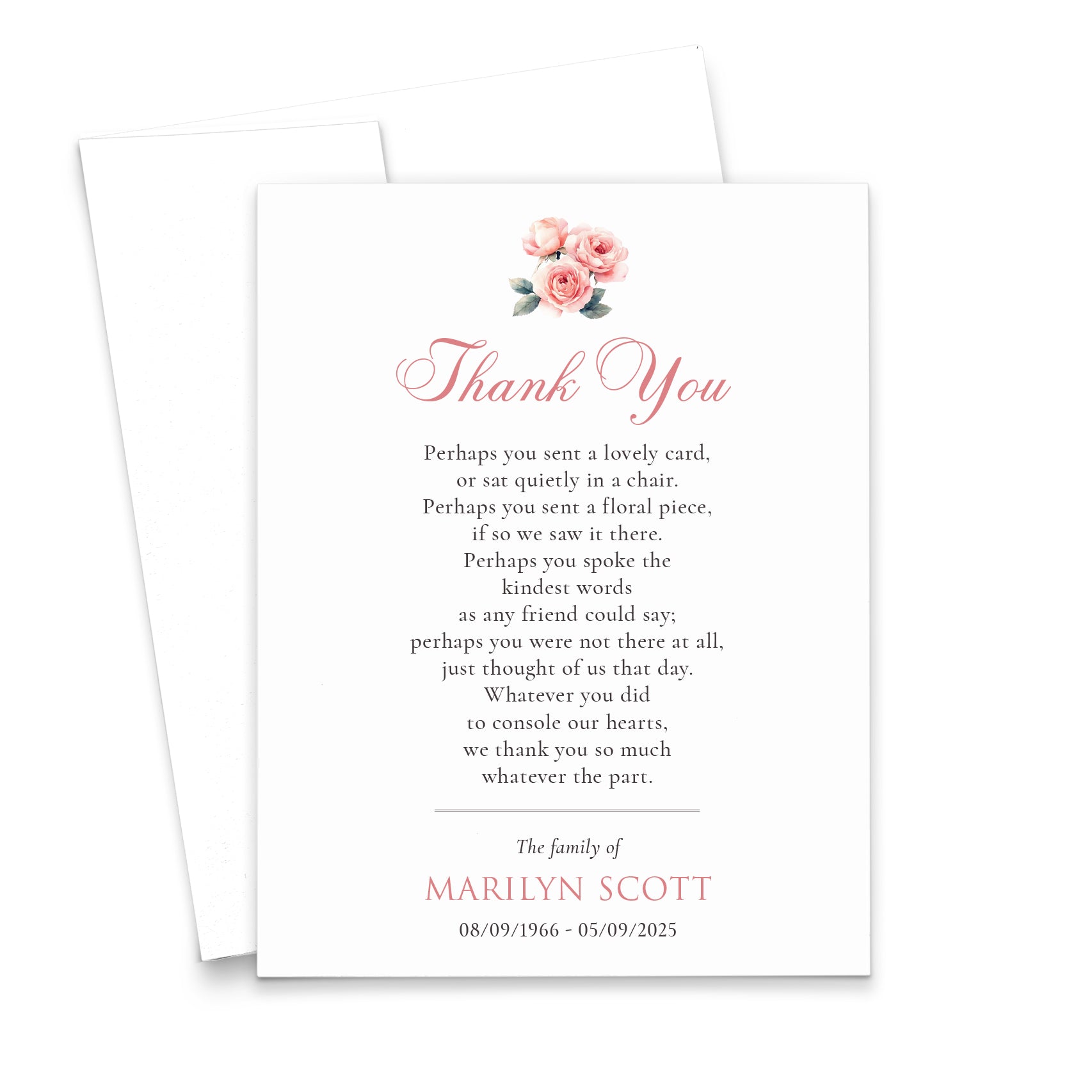 Express heartfelt gratitude with these Funeral Thank You Cards, available in two timeless floral themes—soft pink peonies or calming blue hydrangeas. Each design symbolizes love and remembrance, offering a comforting way to honor support. These Funeral Thank You Cards provide a meaningful and elegant solution for sharing appreciation during a difficult time.
