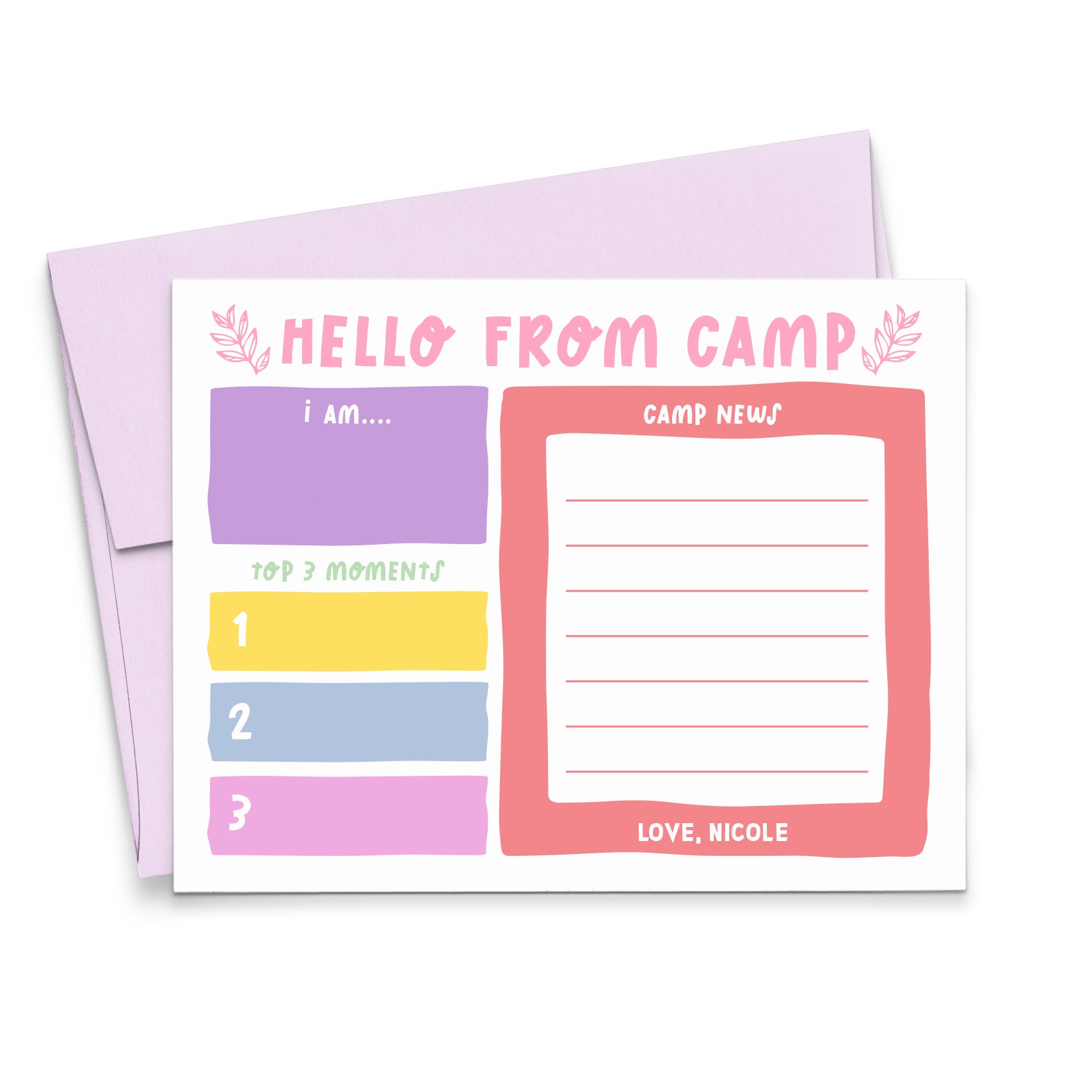 Personalized Camp Stationery: Fun Colors and Fill-In-The-Blank Prompts for Girls